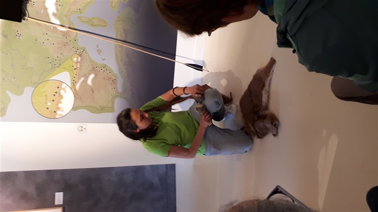 reconstitutions, observant avec curiosité les crânes et les vestiges