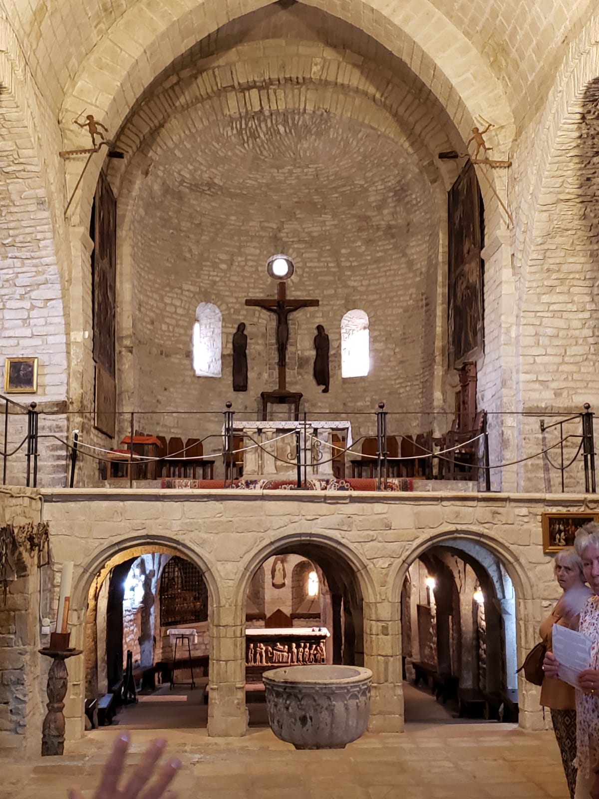nos pieds, une crypte soutenue par une douzaine de colonnes fluettes